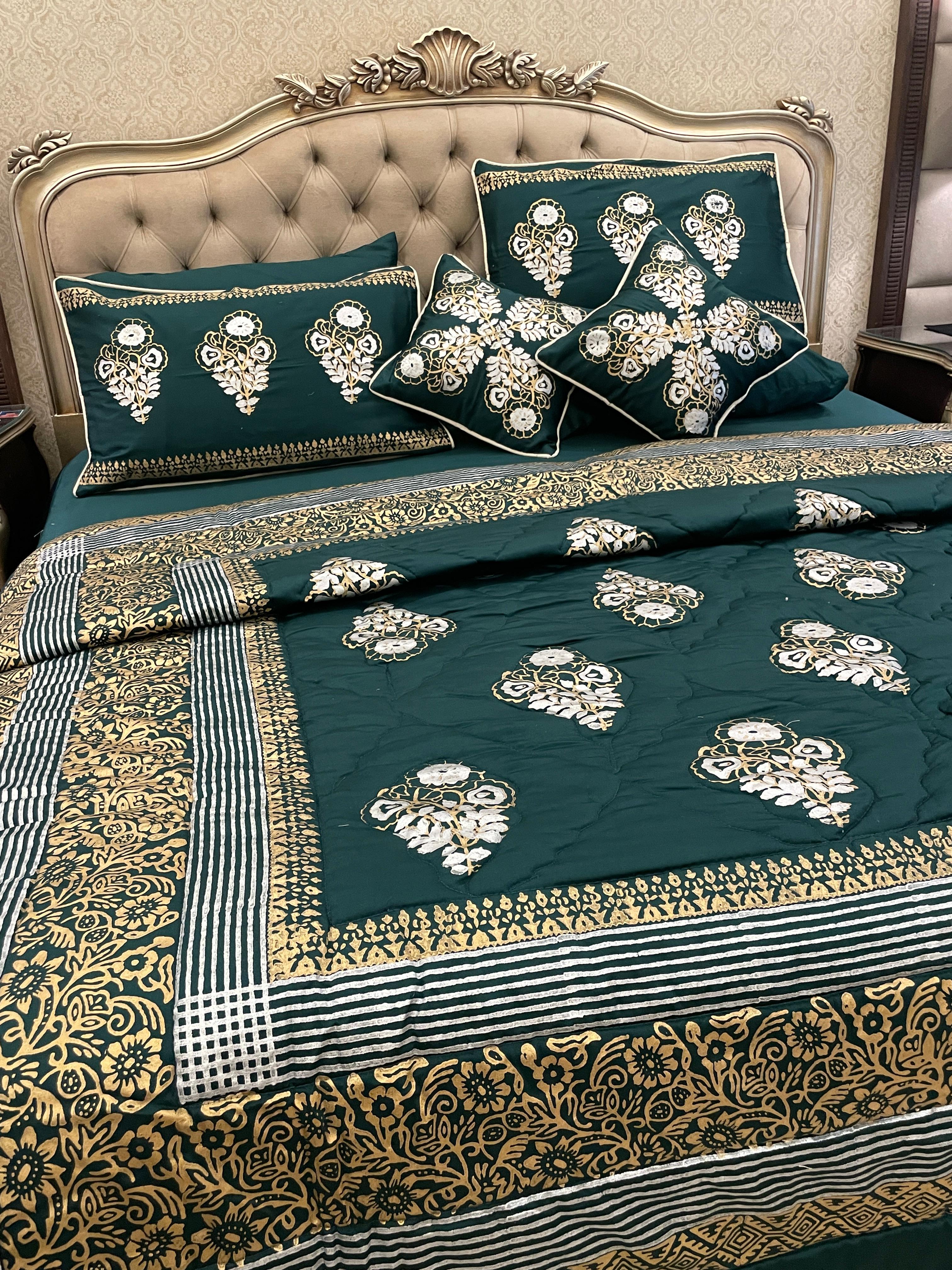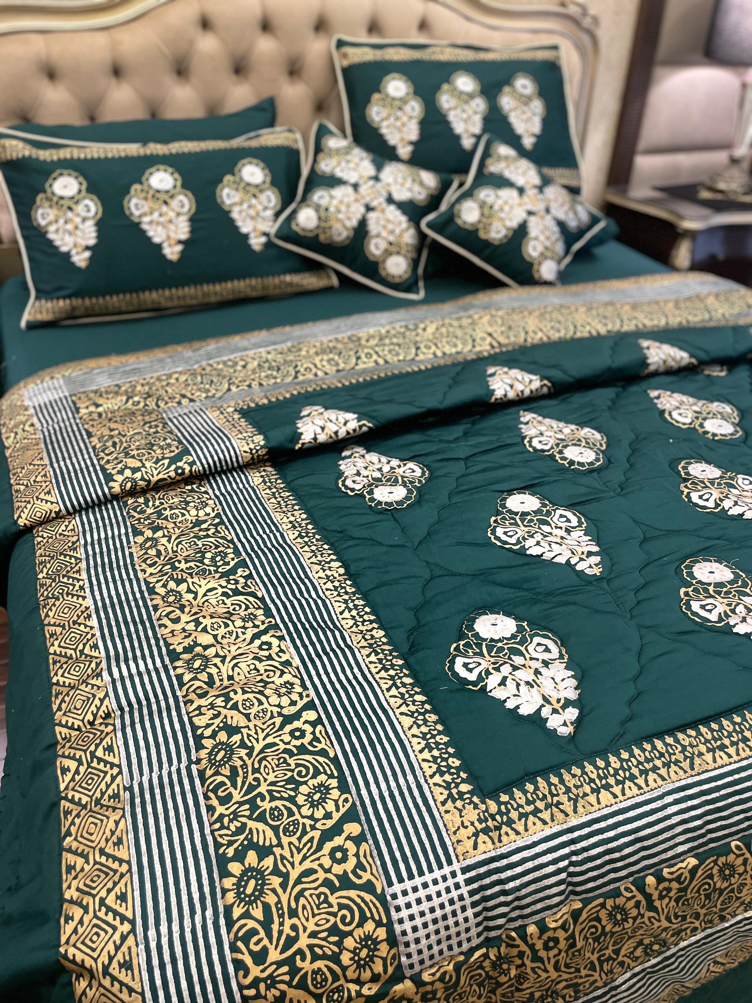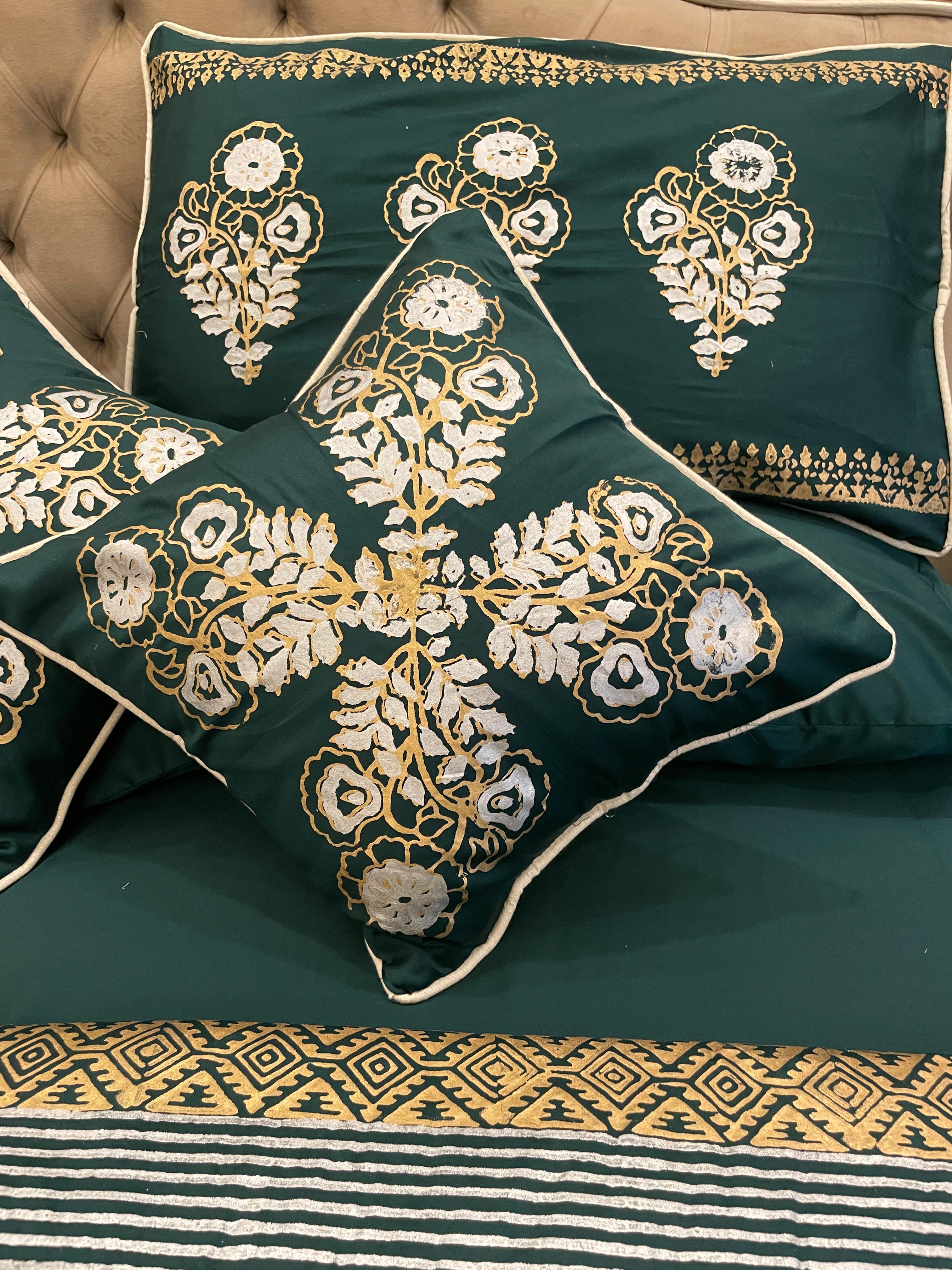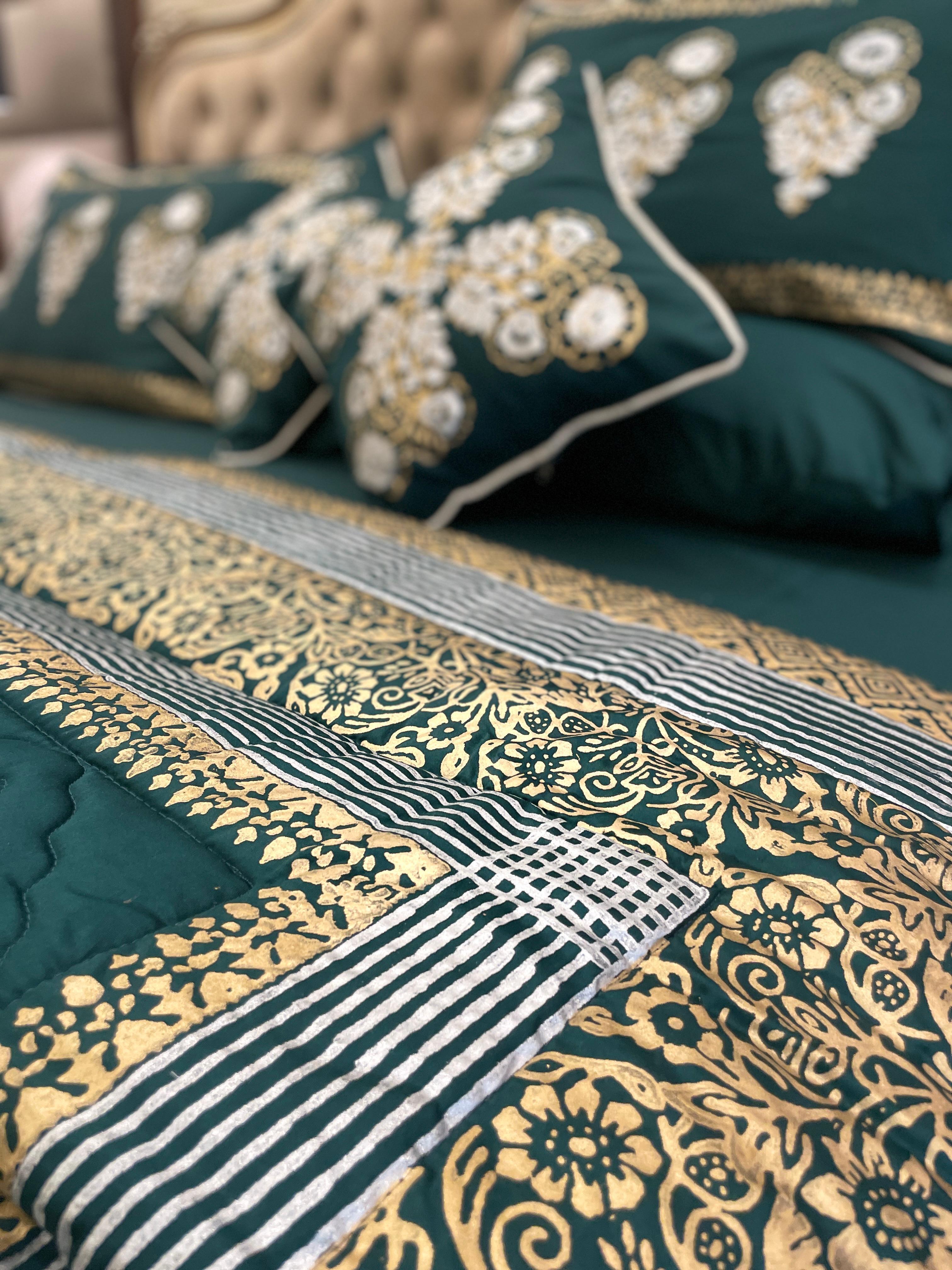 Introducing our block-printed duvet set, adorned with intricate small motifs and bordered with a touch of elegance. Elevate your bedroom with this uniquely designed ensemble, where style meets the artistry of craftsmanship.