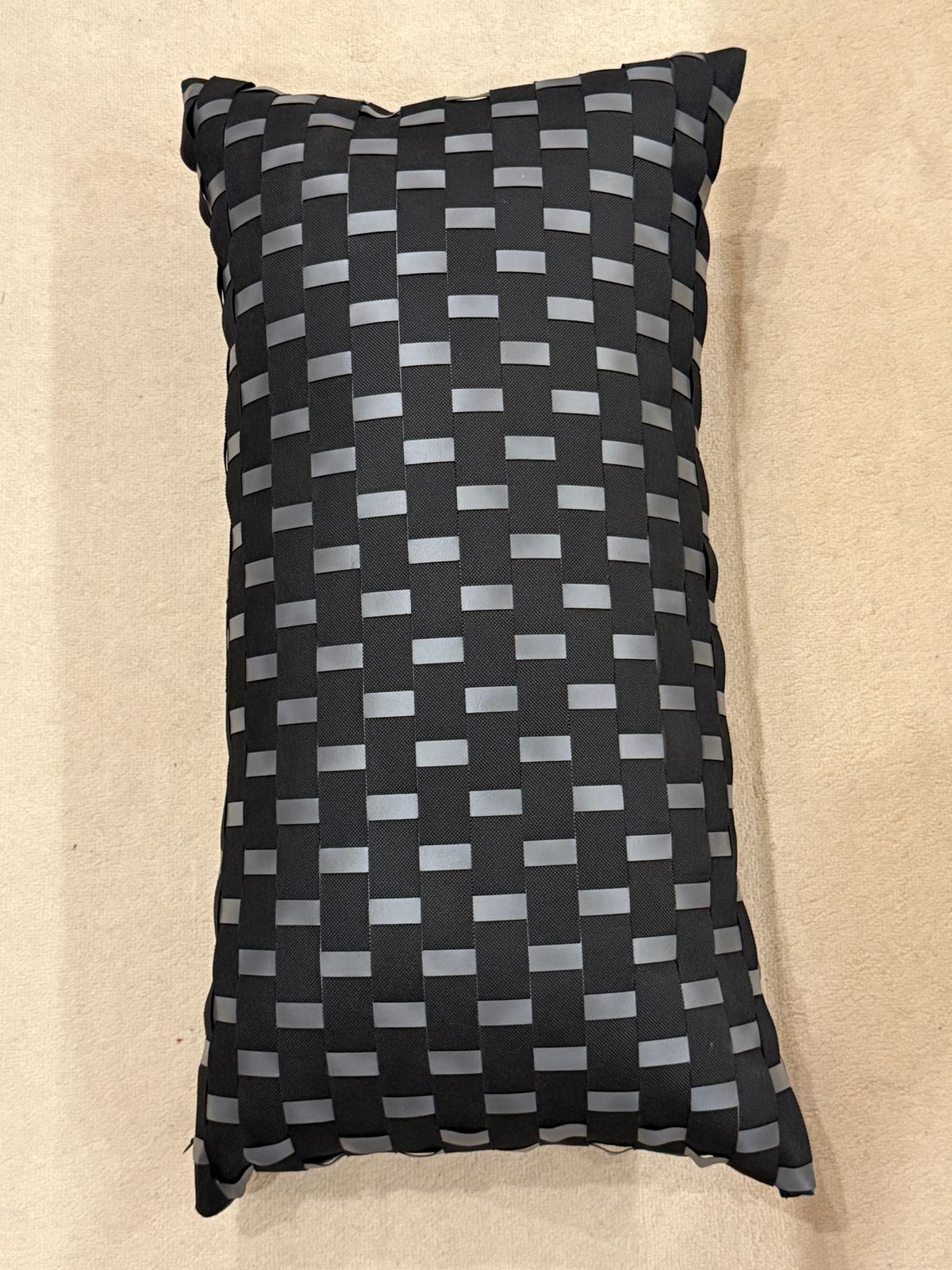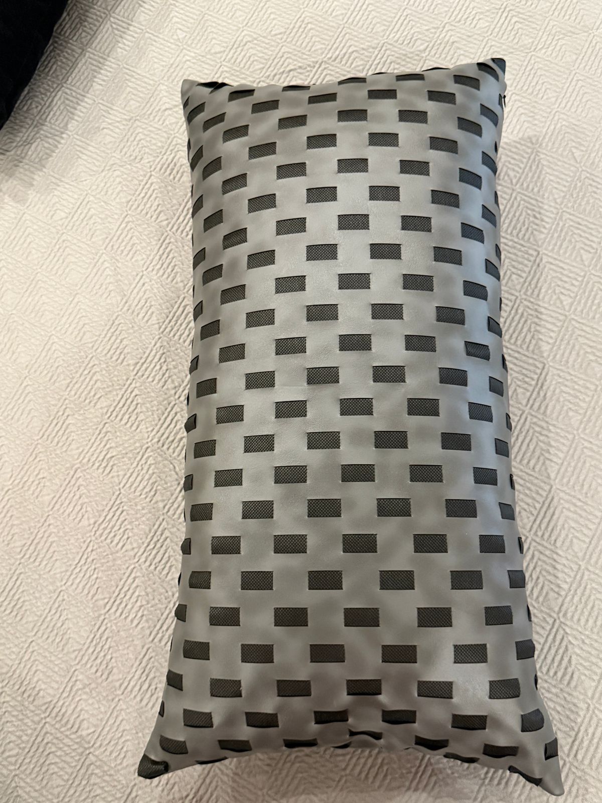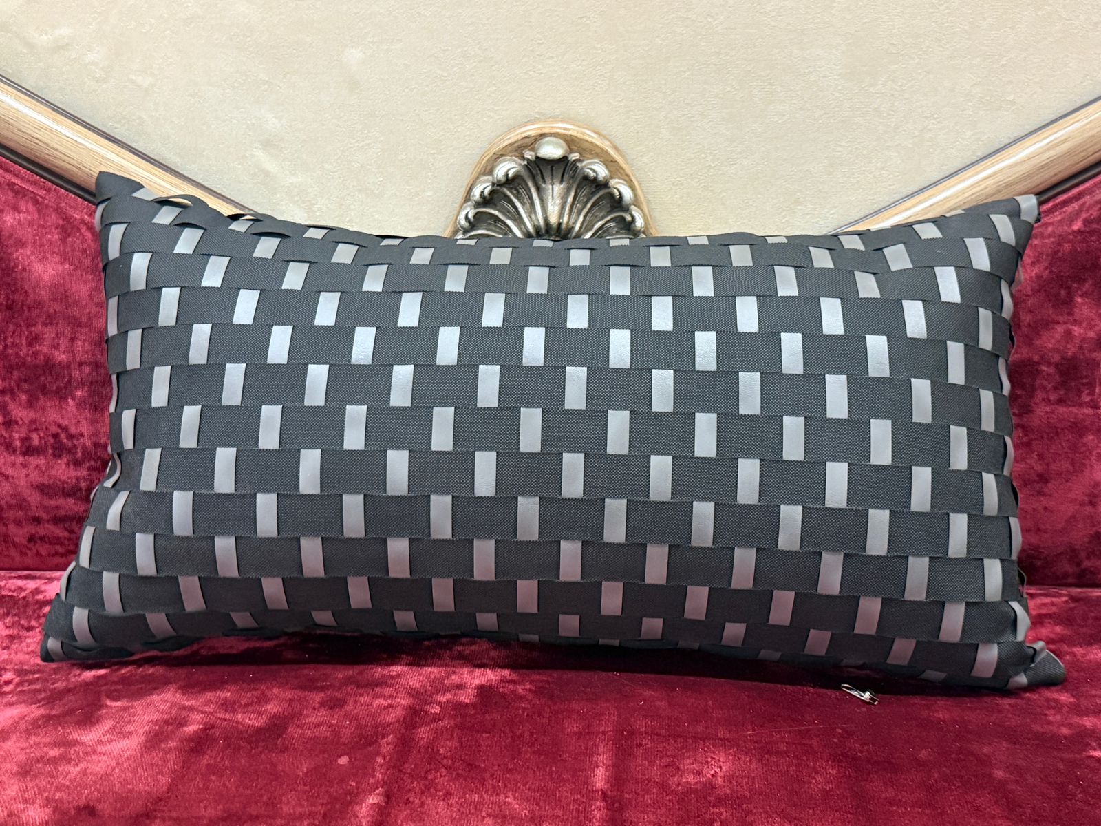Sleek, sophisticated, and plush—this rectangular velvet cushion adds a contemporary edge to any space. Featuring a soft grey velvet base adorned with a bold black geometric pattern, it offers both comfort and style. Perfect as a statement accent for your bed or sofa.
